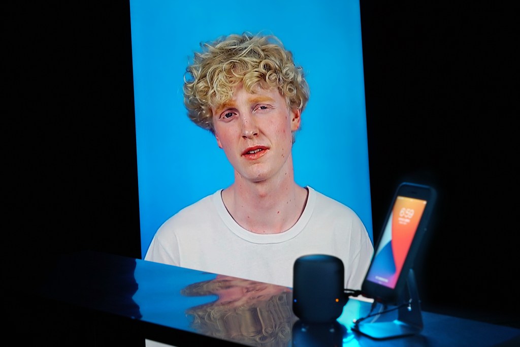 How to explain love to an iPhone is a performance where an actor continuously asks Siri, the iPhone virtual voice assistant, questions about love. By utilizing the built-in “Hey Siri” voice control feature on the iPhone, the actor’s voice in the video activates Siri, creating an interaction between the human and the machine, resulting in a video installation and a performance involving the machine.